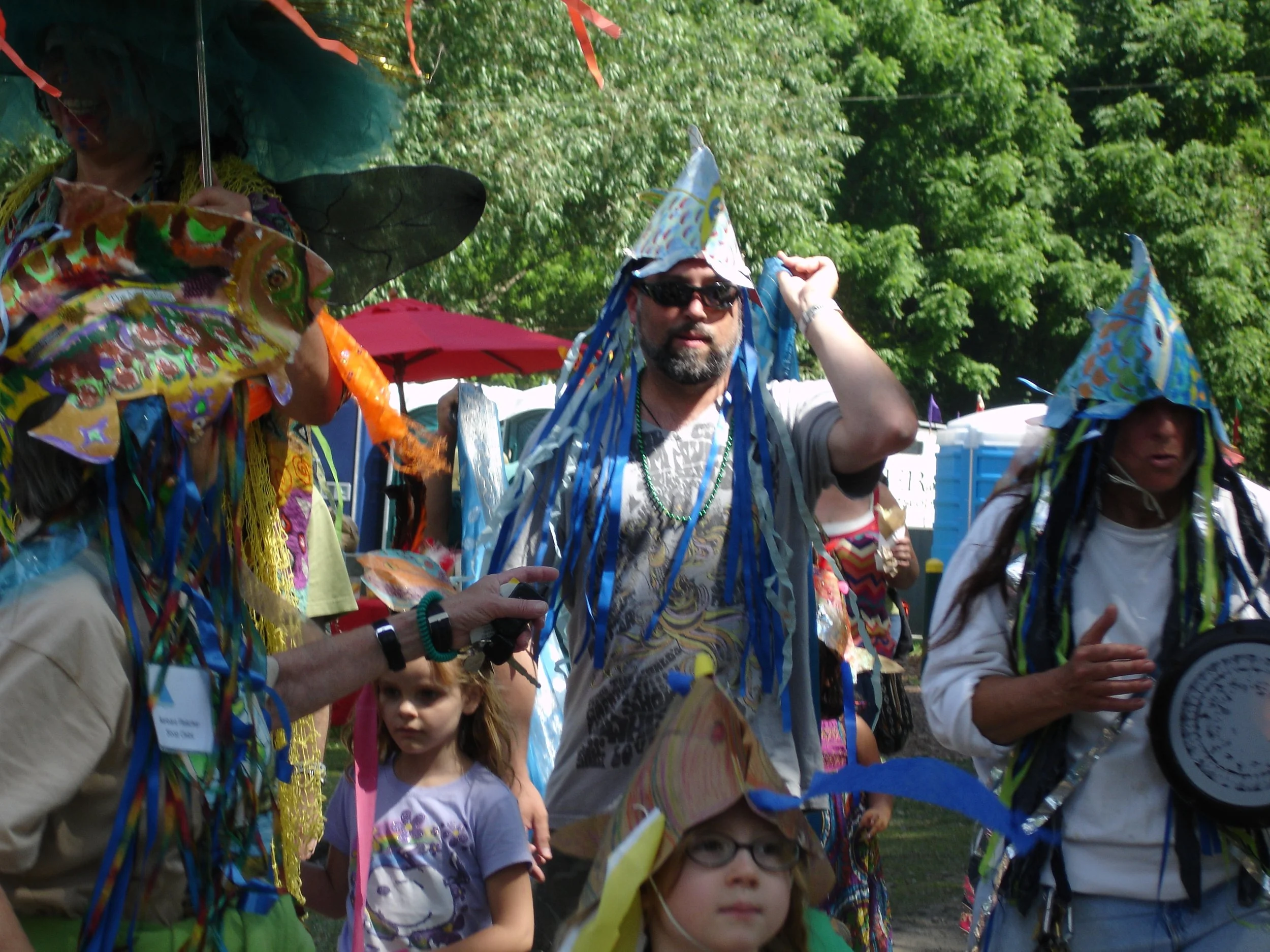 The River Arts Project and Fish Headdresses started with participants making fish headdresses for environmental parades. It evolved into a grant funded program for low-income youth in Greenfield, MA who lived along the Green River. The young participants studied what made the river and its inhabitants sick or healthy and made fun, evocative fish headdresses to reflect that. They also wrote, danced, and did a clean-up and a river-keeper’s council on its banks.