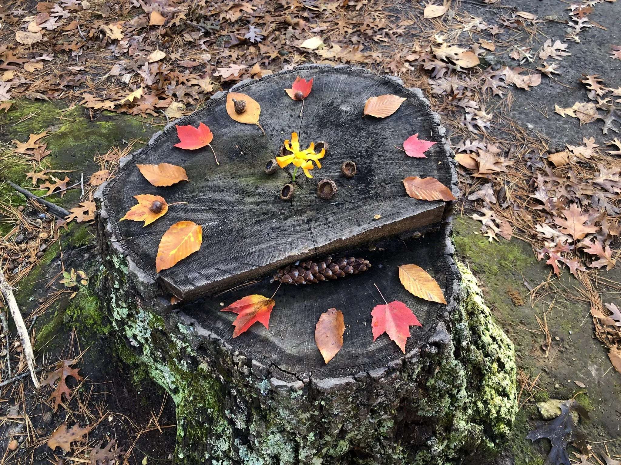 Nature Mandalas began as a way to offer people with disabilities something simple and satisfying to do together in nature. Picking up a stick, a stone, a flower or a shell and placing it with intention into a shared circular design on the ground is relatively easy, even for those who are movement or sight impaired. The Mandalas then take on added value as participants have the option to share how their object symbolizes their strengths and struggles. It also works well since the “materials” are always right on hand! The centering, tactile and community building aspects of making Nature Mandalas work well for everyone from children to teachers to Vietnam Vets.
