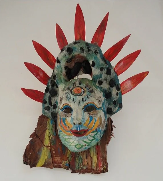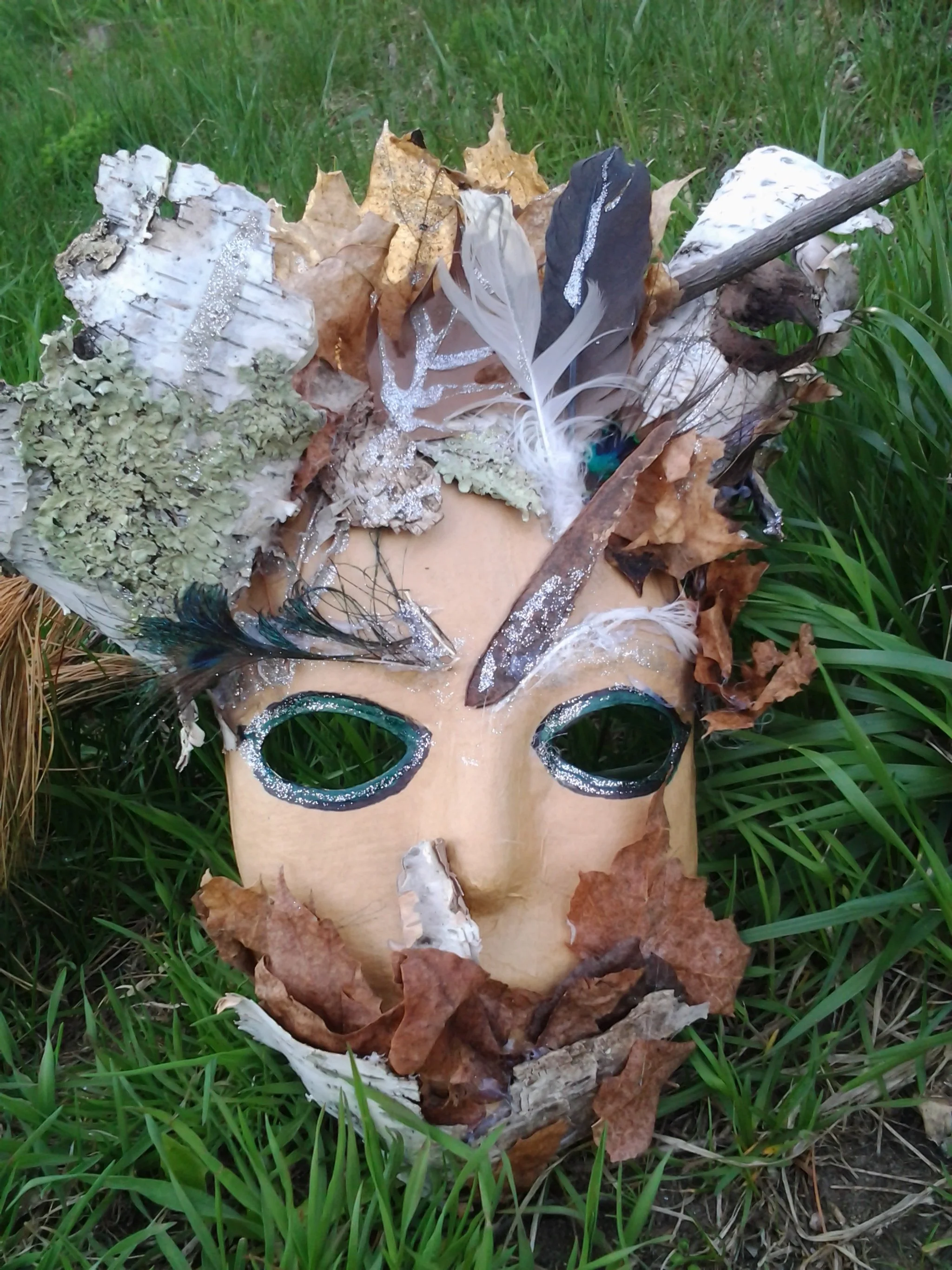 I work mainly with plaster casting, papier-mâché, cardboard and paper bags. I make masks for exhibits, rituals and individual clients. I also perform in my own masks, whether it is as a tree spirit working to protect a forest or a fire-water spirit celebrating transformation.